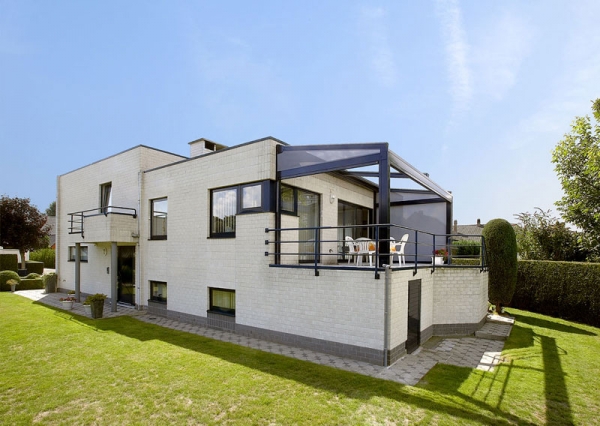 De terrasoverkapping heeft een hoge kwaliteit van afwerking. De elektrische kabels zijn volledig weggewerkt.
